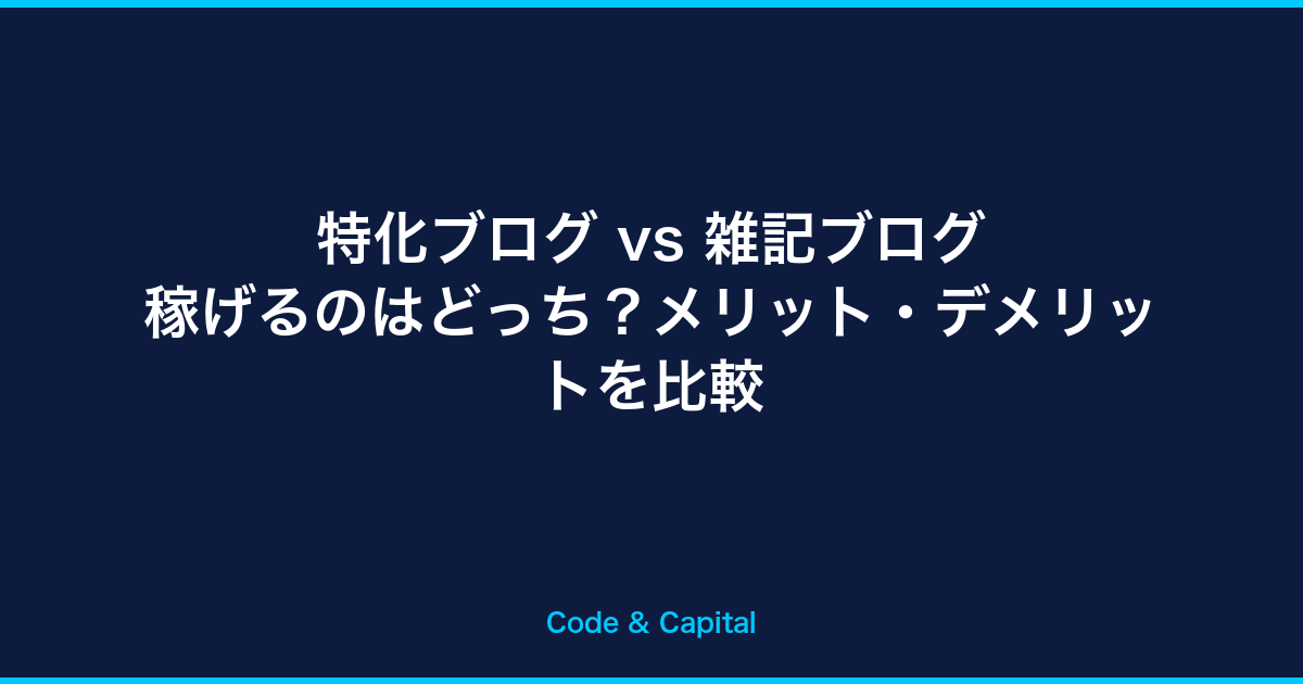 例えば、「プログラミング」「副業」「ライフハック」の3カテゴリーに絞るような形です。完全な雑記ブログよりもテーマ性があり、完全な特化ブログよりもネタ切れしにくいというメリットがあります。