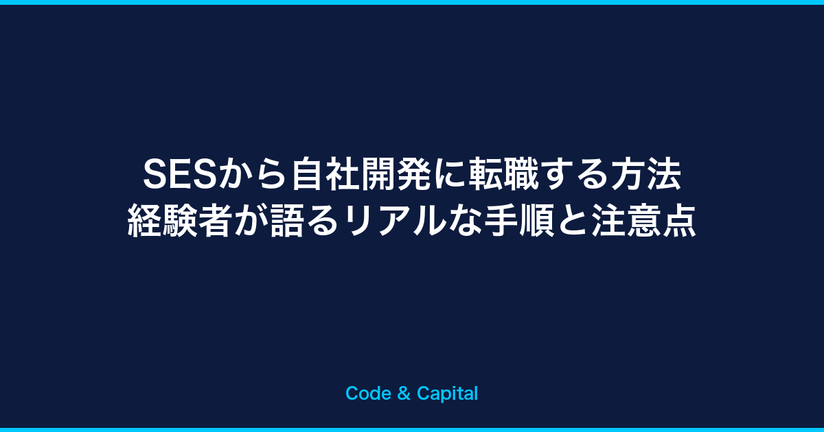 この記事では、筆者自身の実体験をもとに、SESから自社開発企業に転職するための具体的な手順と注意点を解説します。「SESをやめたい」「自社開発に移りたい」と考えている方に、リアルな情報をお伝えします。