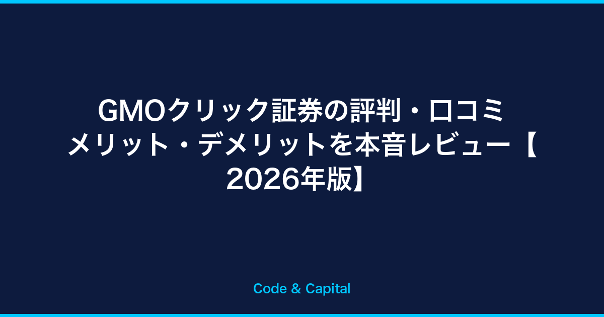 GMOクリック証券の評判・口コミ|メリット・デメリットを本音レビュー【2026年版】