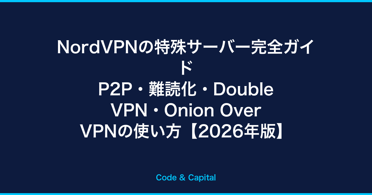 NordVPNの特殊サーバー完全ガイド|P2P・難読化・Double VPN・Onion Over VPNの使い方【2026年版】