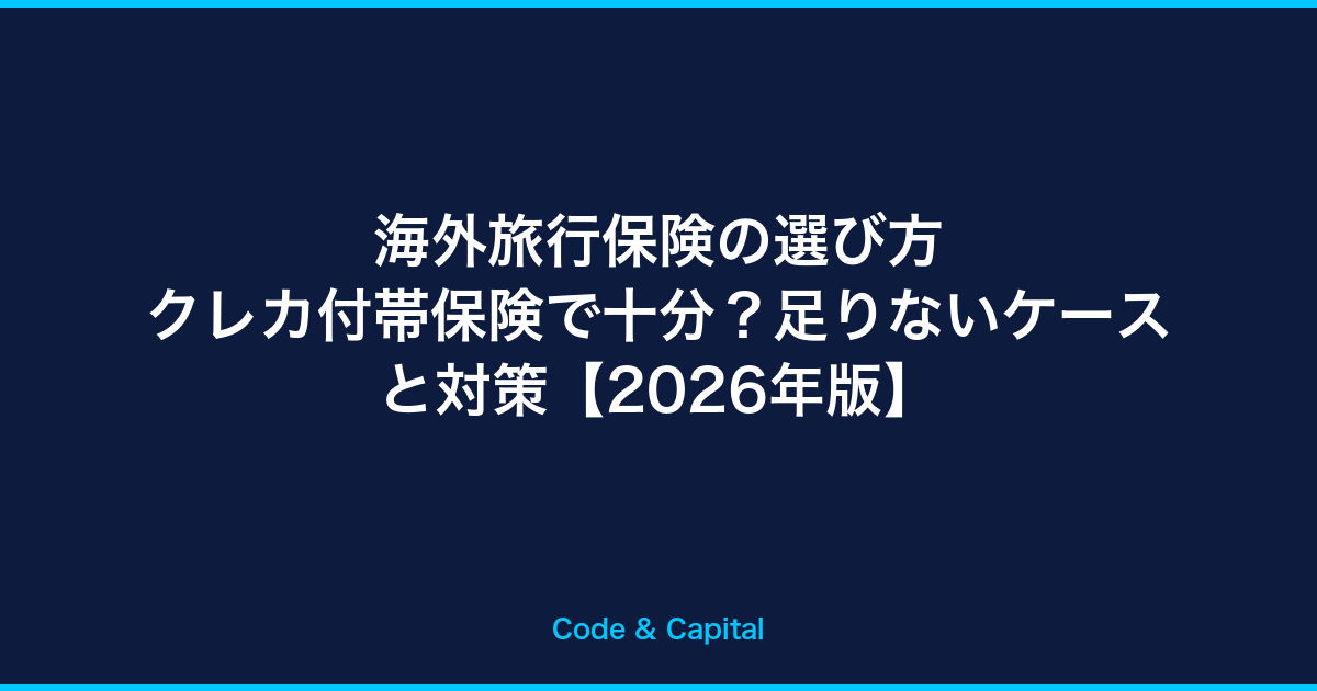 海外旅行保険の選び方|クレカ付帯保険で十分?足りないケースと対策【2026年版】