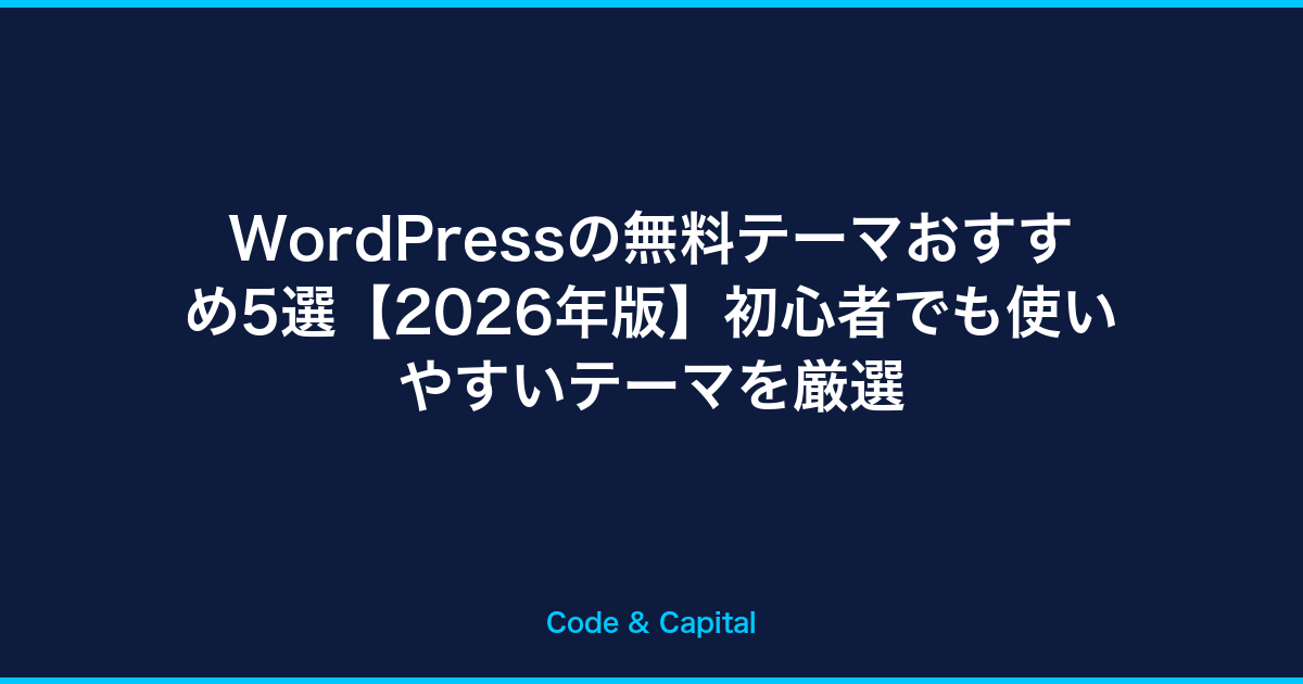 なお、当ブログ「Code & Capital」もCocoonで運営中です。無料テーマでも十分に戦えることを身をもって実感しています。